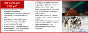 | Gesamtpreis pro Person | 1.775 € | 1.865 € | 2.090 € | 2.330 € | 2.440 € | 2.940 € | 3.070 € |