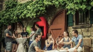 Besuchen Sie mit uns das größte Weinfest in Rheinhessen! Der Kellerweg liegt unterhalb der Guntersblumer Weinberge und erstreckt sich über eine Länge von rund 1.000 Metern. Hier reiht sich Kelterhaus an Kelterhaus, in denen früher die Winzer ihren Wein gekeltert haben. Einige dieser alten Keller werden auch heute noch genutzt. Die Keller sowie zahlreiche Weinstände laden jährlich an den letzten beiden August-Wochenenden am Kellerweg- Fest ein, Guntersblumer Weine und Sekte zu genießen. Jeder Keller hat sein eigenes Flair und seinen eigenen Stil, der sich auch in der Live-Musik widerspiegelt! Hier ist für jeden Geschmack etwas dabei und dies seit mehr als 60 Jahren. Verbringen Sie einige unvergessliche Stunden im Kellerweg in Guntersblum.